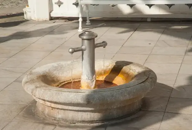 Mit unserem Reiseleiter unternehmen wir auch einen Abstecher in den jüngsten Kurort im Bäderdreieck, nach Franzensbad. Hier entspringt auf dem Miru-Platz die Franzensquelle unter einem schönen Pavillon von 1832.